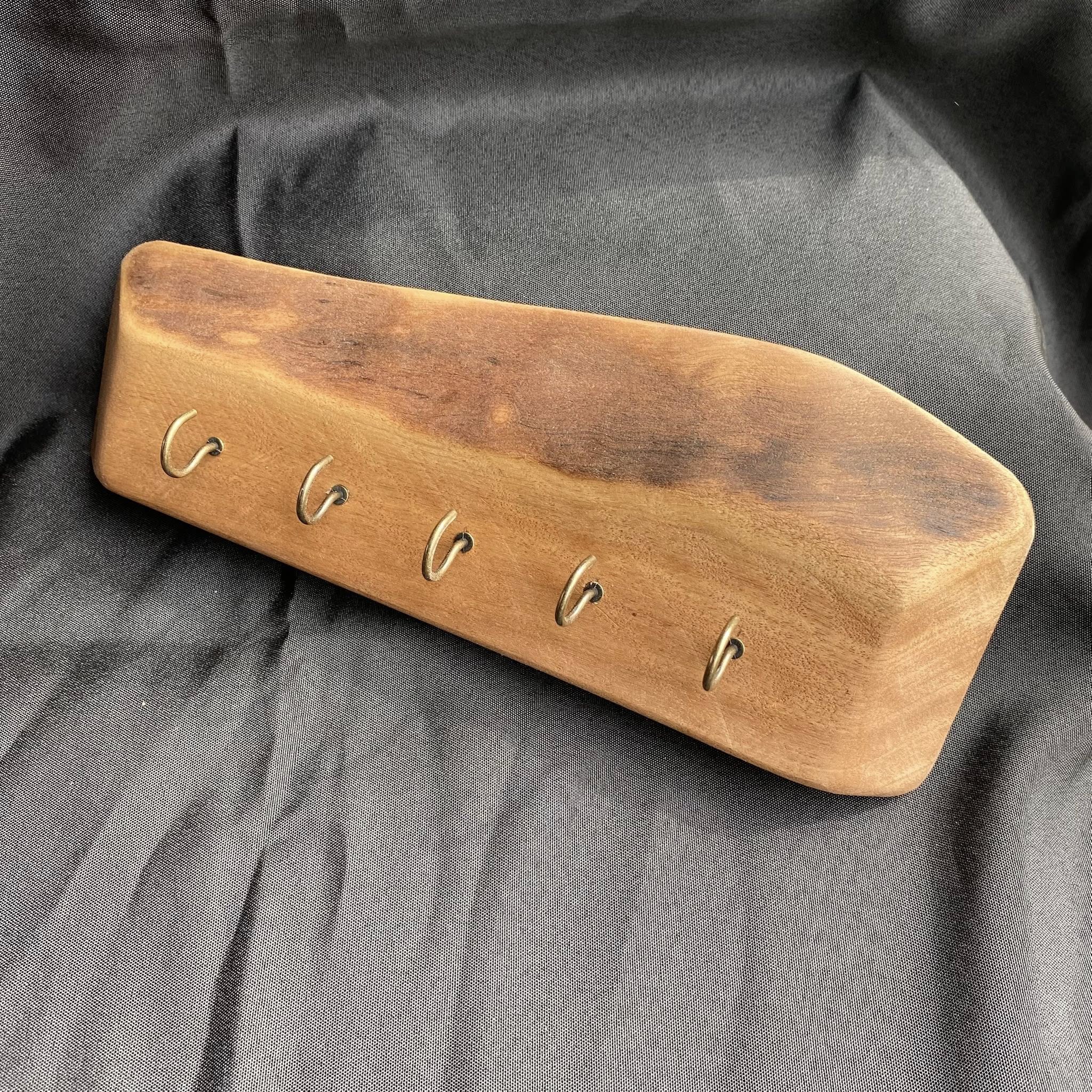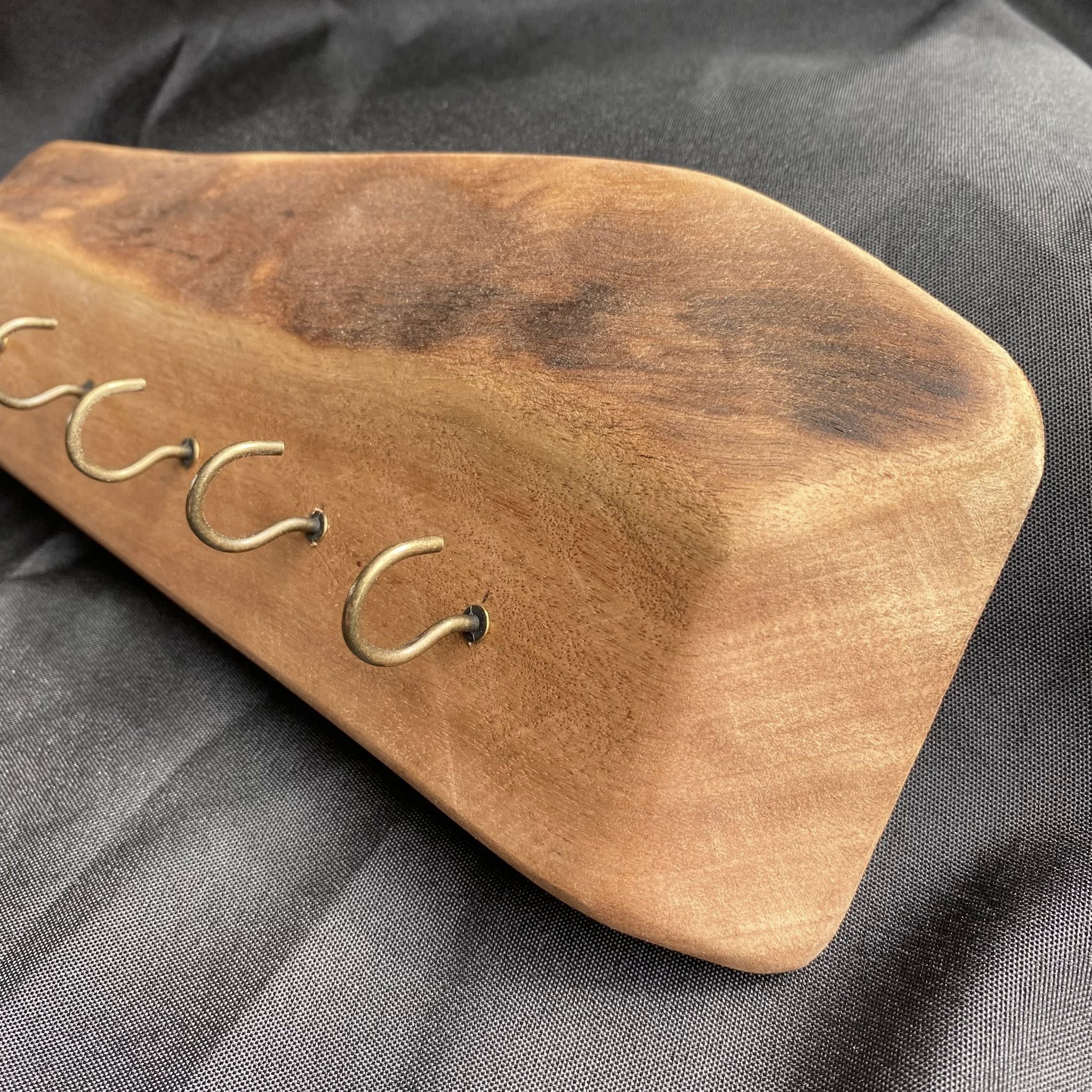 Crafted from locally sourced walnut, this piece keeps all the natural character of the wood with its beautiful live edge. Finished with hard wax oil to bring out the grain and fitted with five solid brass hooks — perfect for keeping your keys organised in style.